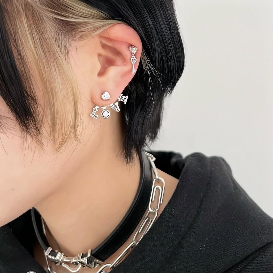 A Classic earring with a small heart key that swings around your ear. The post portion is made of K18, a hypoallergenic material. *Single