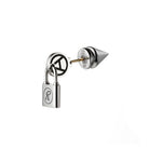 An earring featuring a padlock, anarchy symbol, and spike motif catch that gives a rock-inspired impression. The post is made of 18K gold, a material less likely to cause allergic reactions. Sold individually.