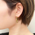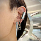 An earring inspired by the clip motif of bondage items, expressing a bold and edgy aesthetic.