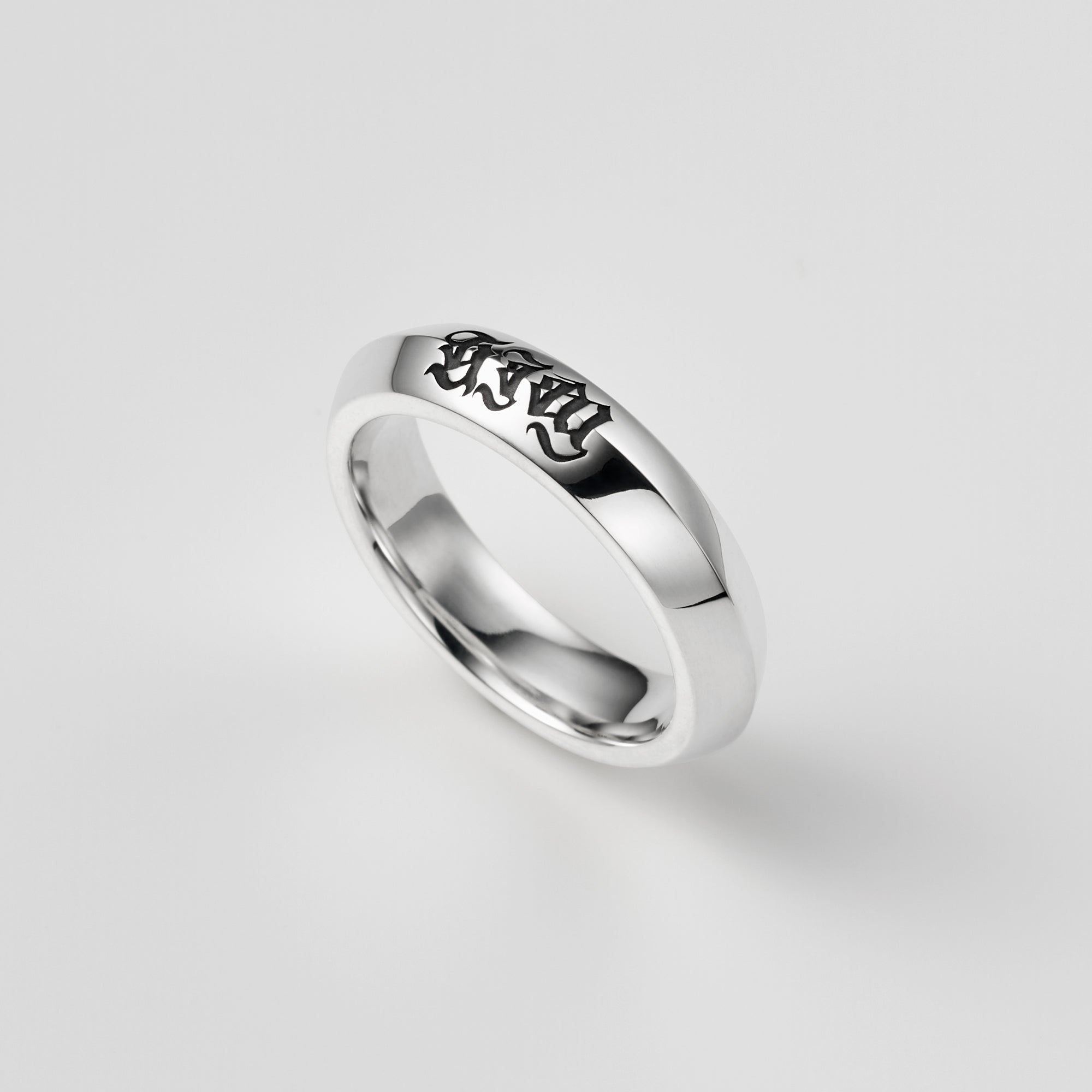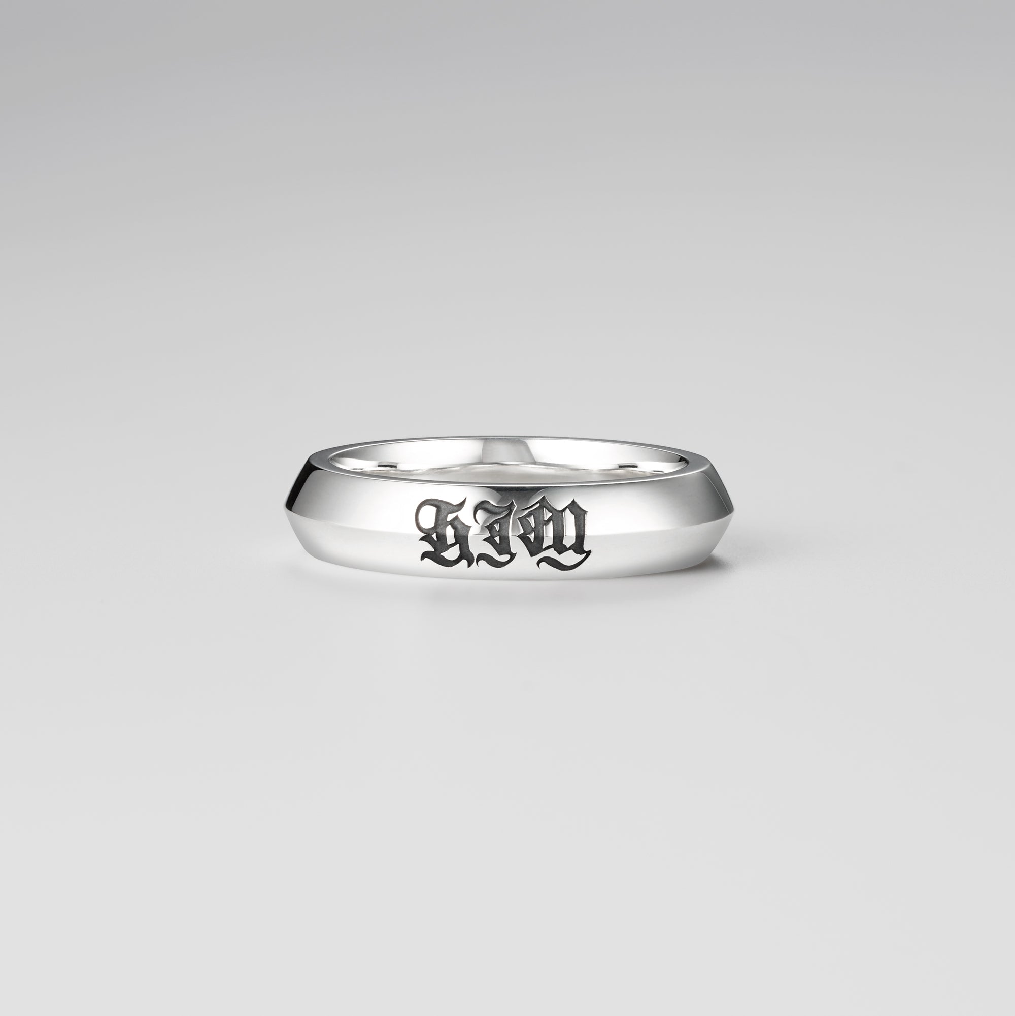 A simple and edgy ring. The letters "HIM" are sculptured at the center of the ring. Perfect as a matching ring or gift for your loved one.