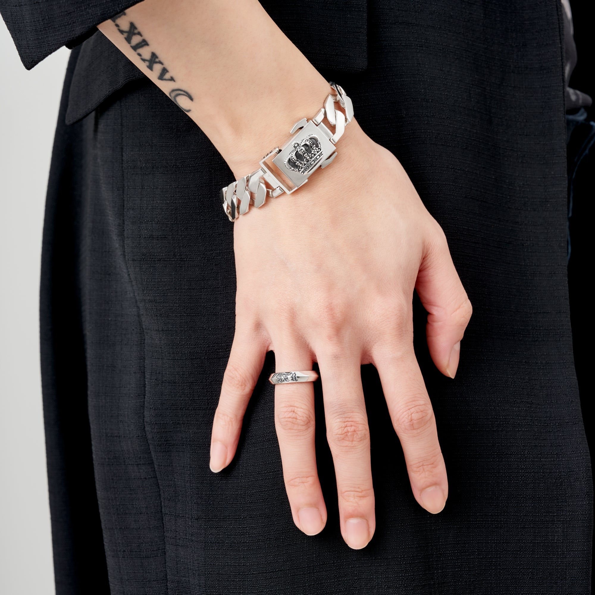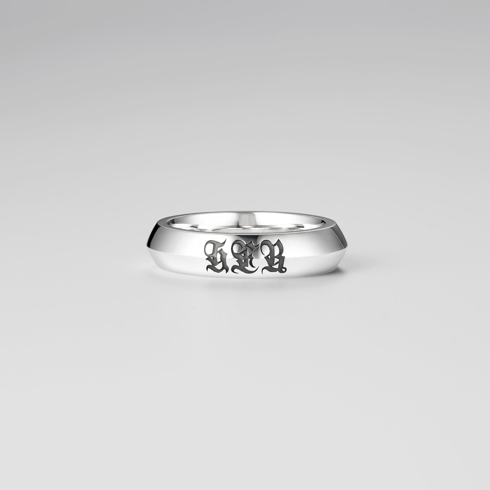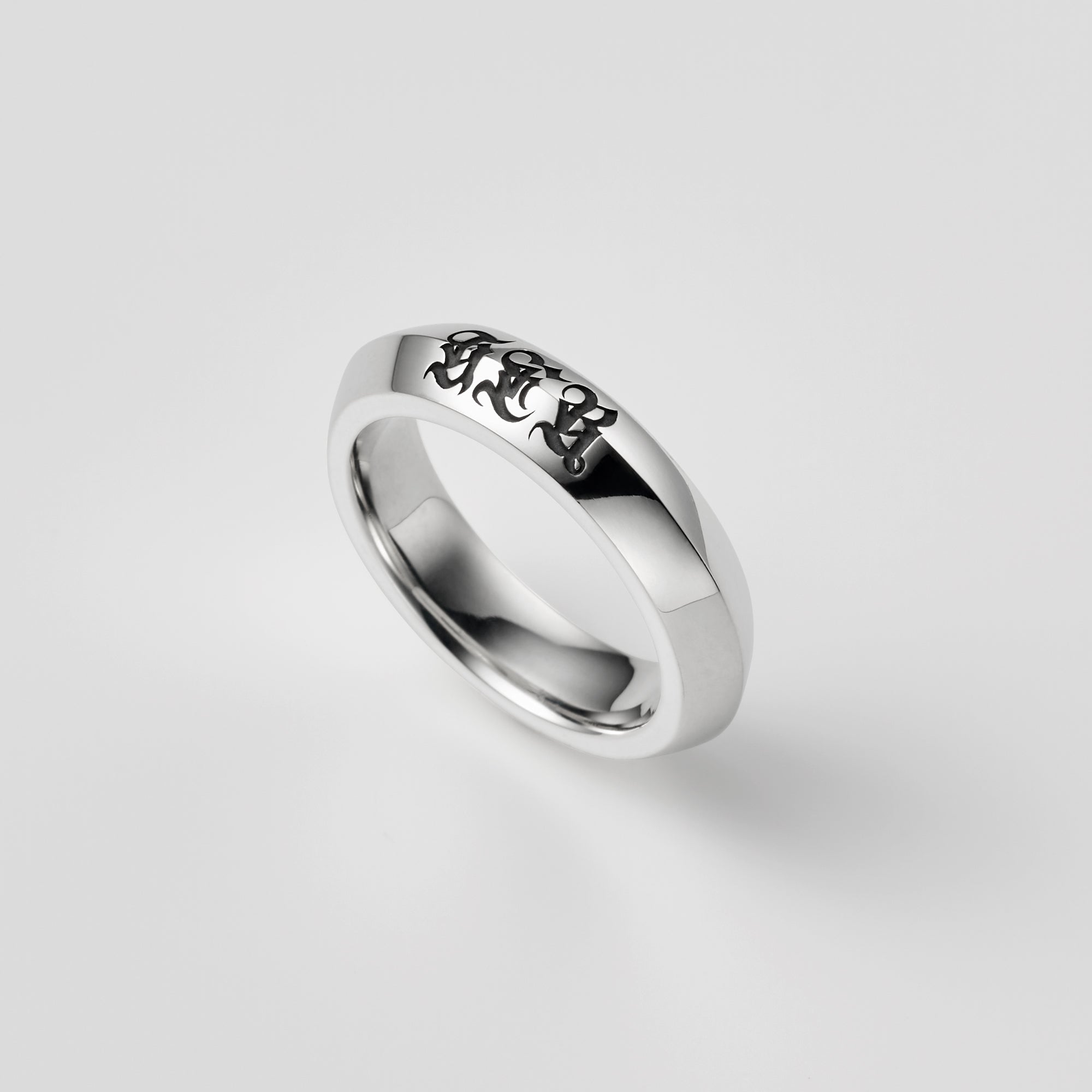 A simple and edgy ring. The letters "HER" are sculptured at the center of the ring. Perfect as a matching ring or gift for your loved one.