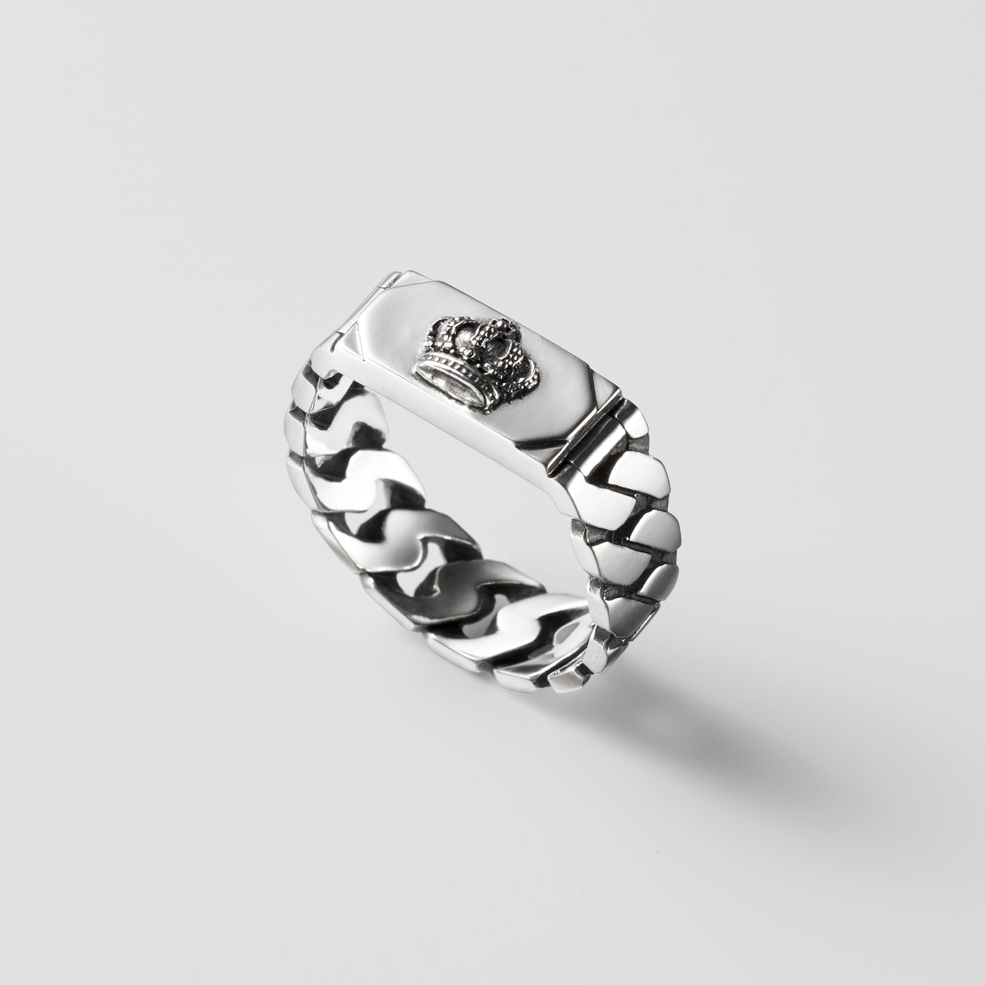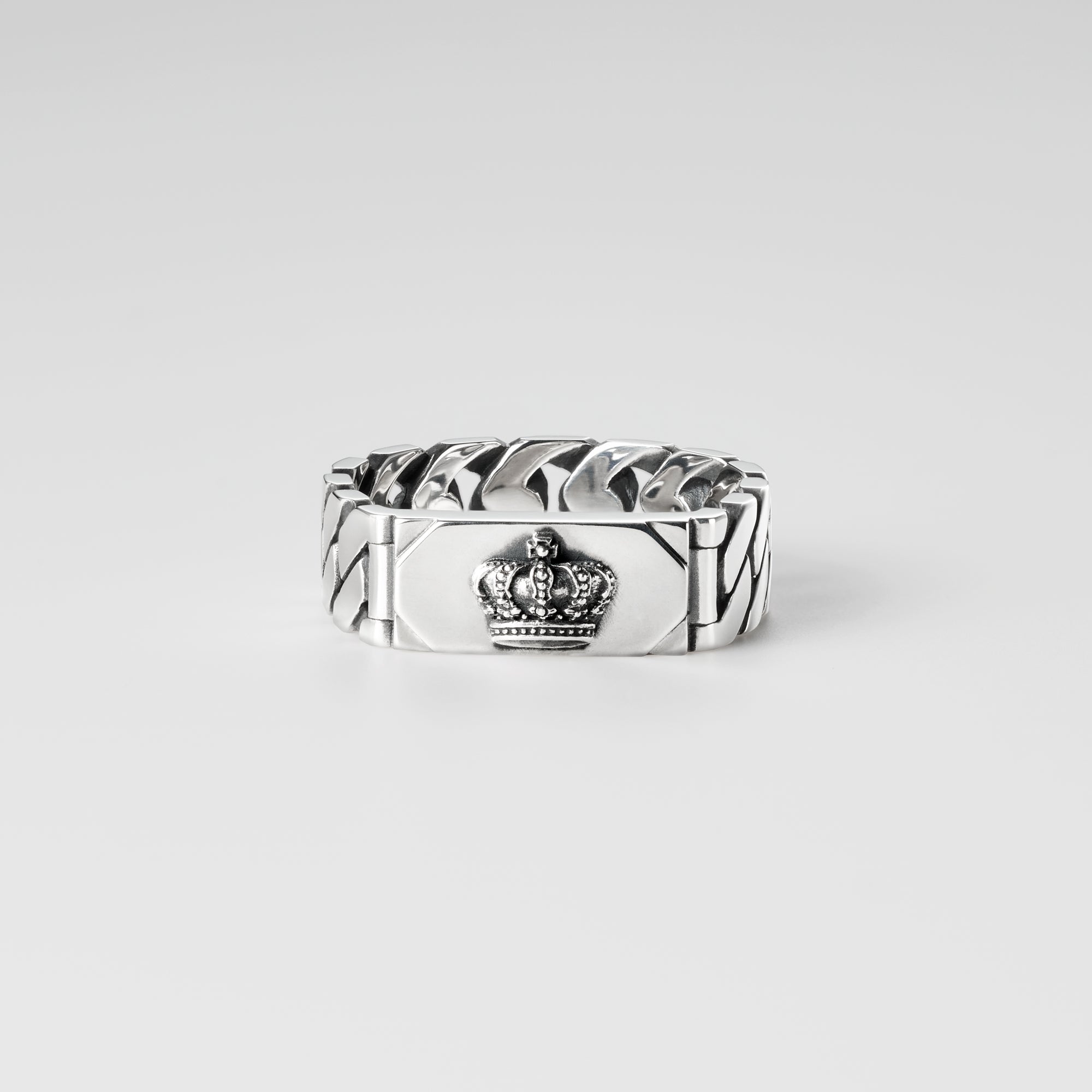 This ring features the plate with our iconic Crown motif and the right voluminous Kihei chain. Perfect as a matching ring for your loved one.