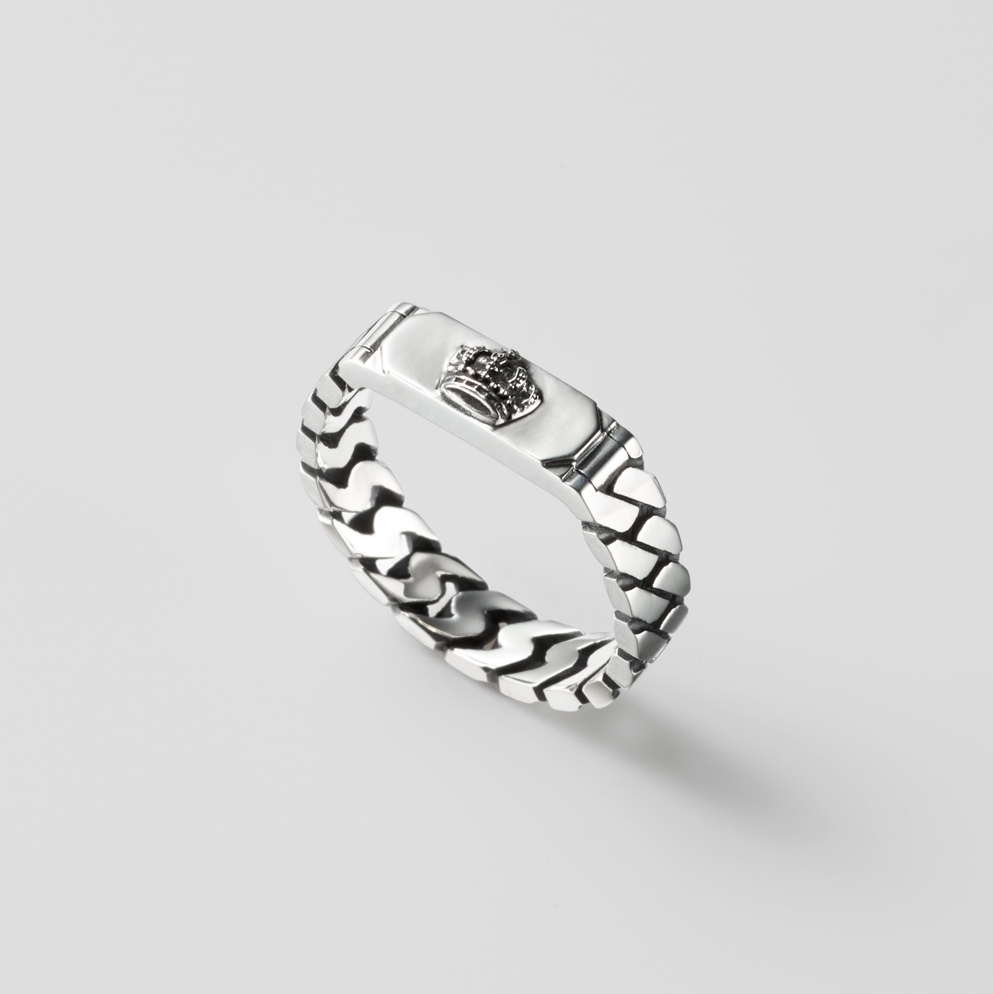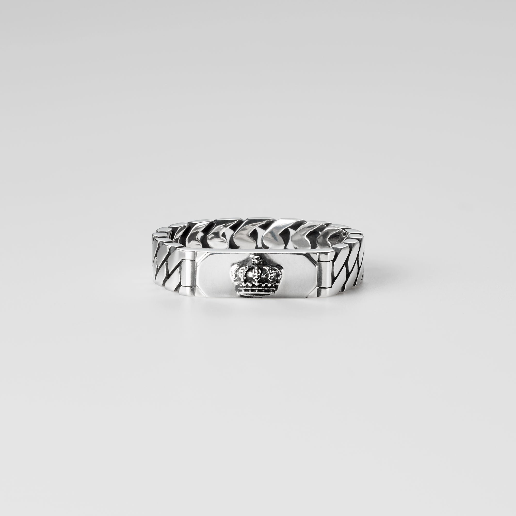 This ring features the plate with our iconic Crown motif and the right voluminous Kihei chain. Perfect as a matching ring for your loved one.