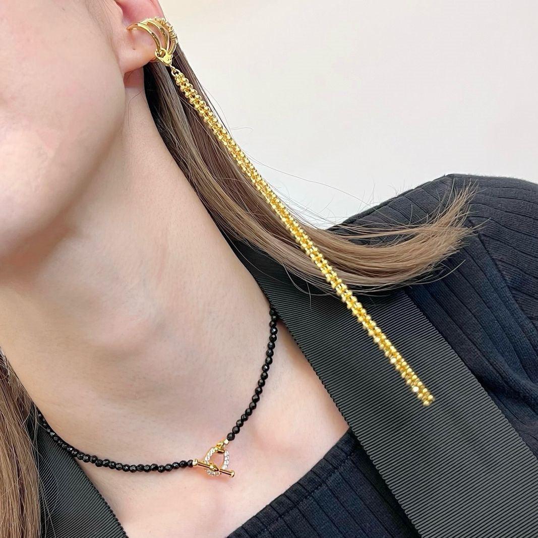 A chandelier of night club. It's decorated with gemstones to express paparazzi camera flash. The festive style makes your face look more gorgeous and pumps you up.*Single earring (left) *We give away the limited tassel chain with the same color as a free gift. (tassel chain can not be repaired) Gold finish is out of stock.
