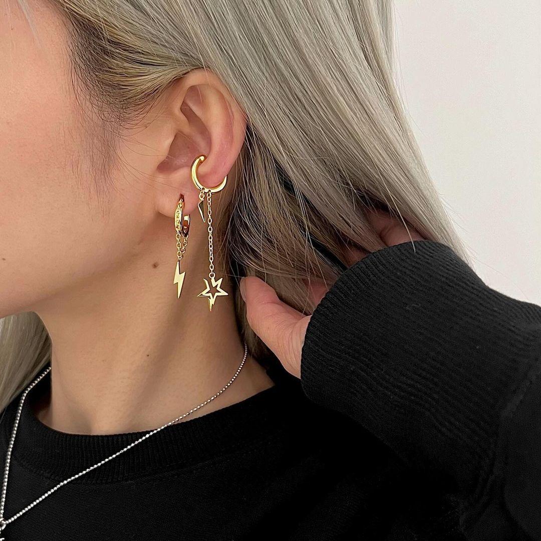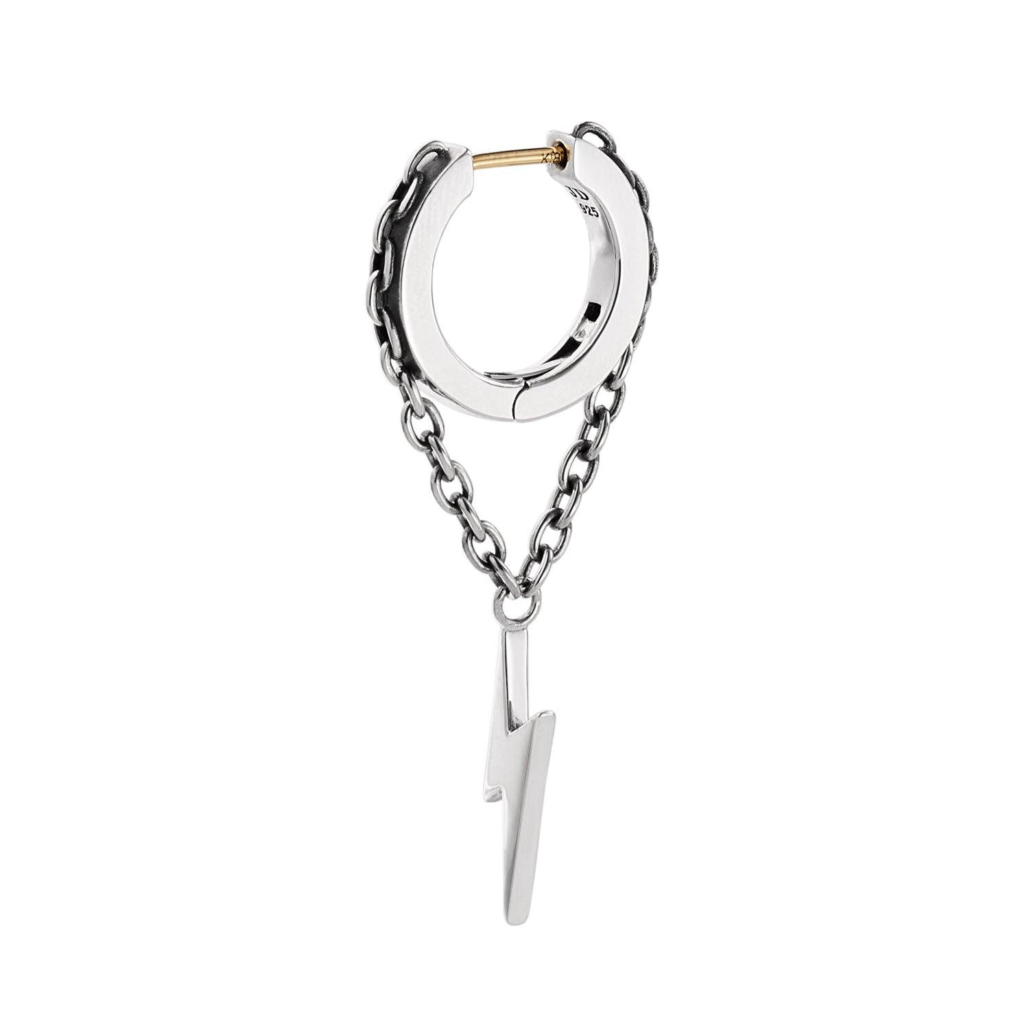 The lightning motif swinging from chain hoop decorates your ear in the coolest way. Uses hypoallergenic K18 post. *Limited item *single earring Uses hypoallergenic K18 post. *Limited item *single earring