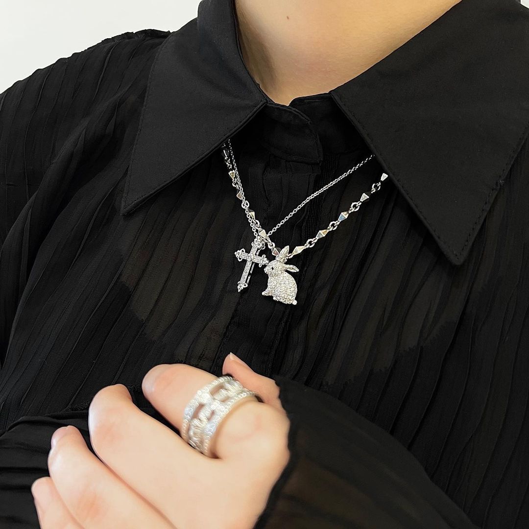 Less volume cross motif necklace brings out elegant ambience at your neck. Great for a gift.