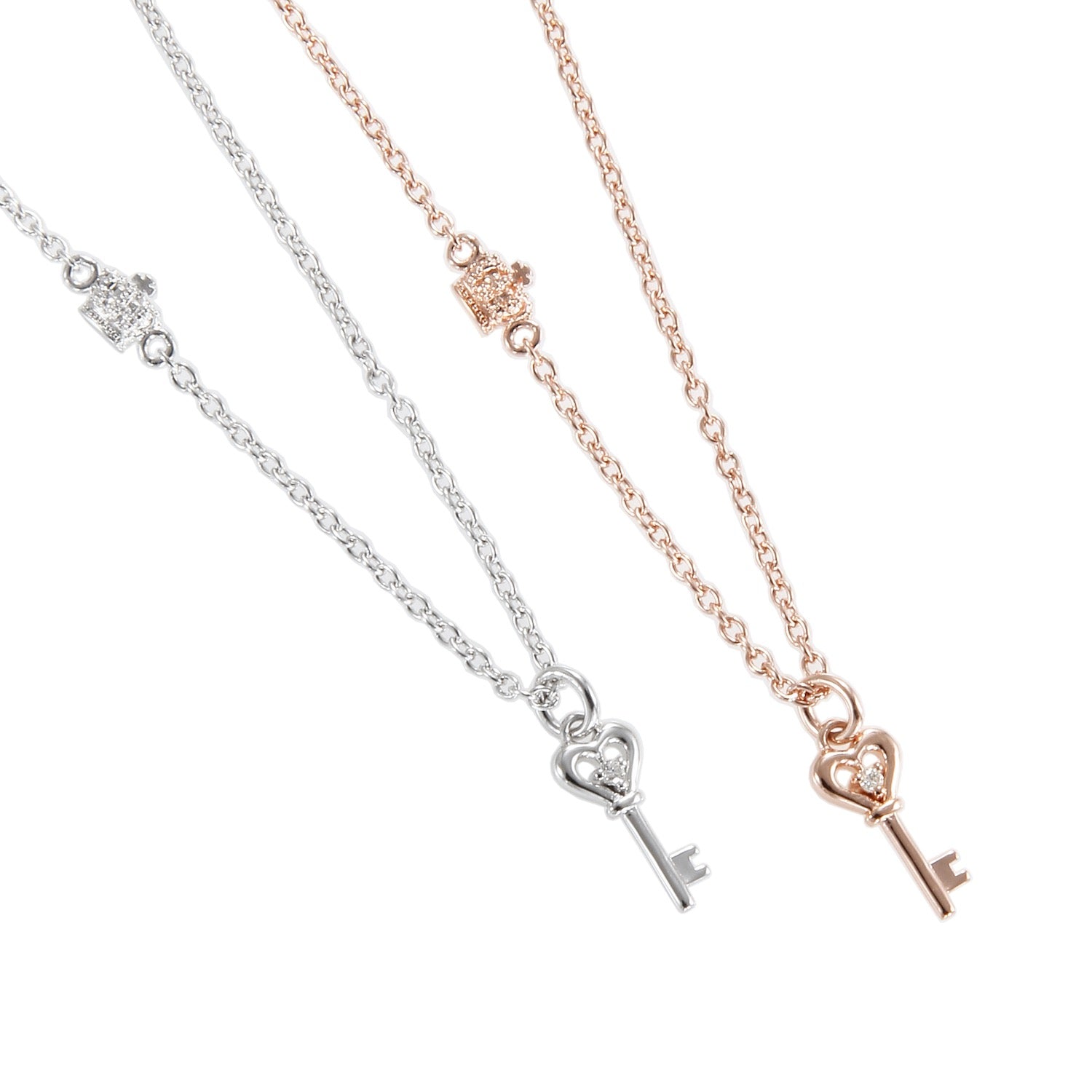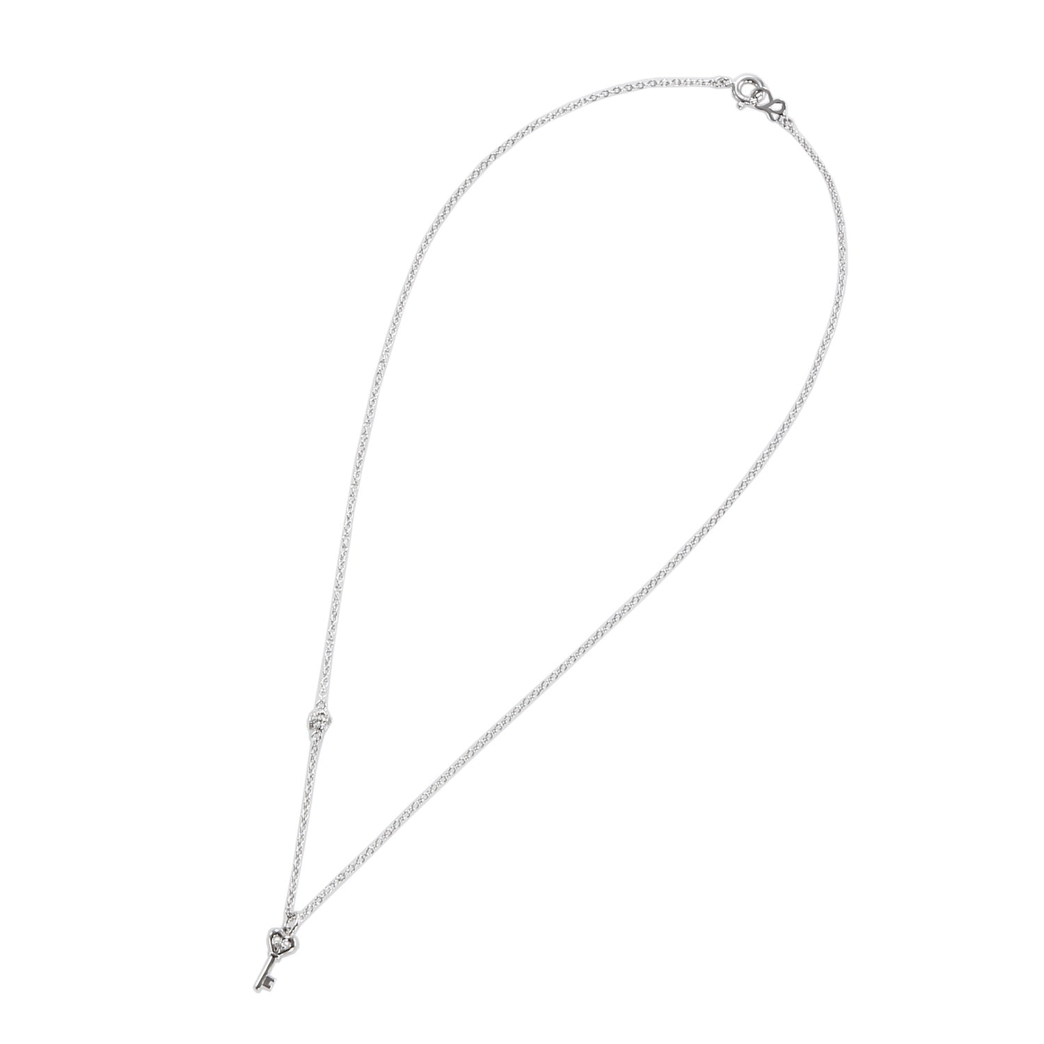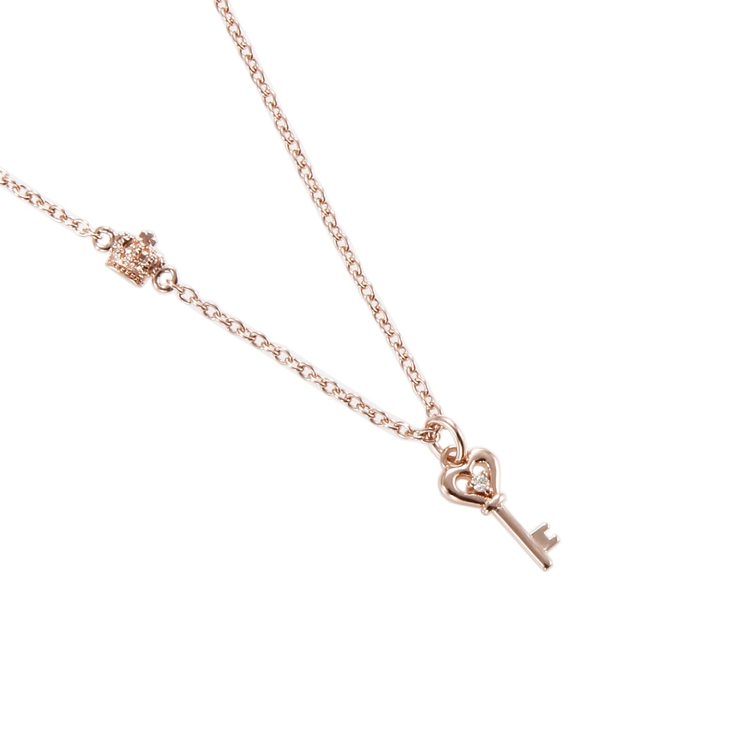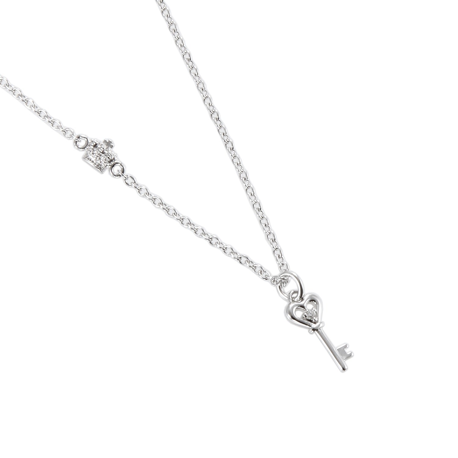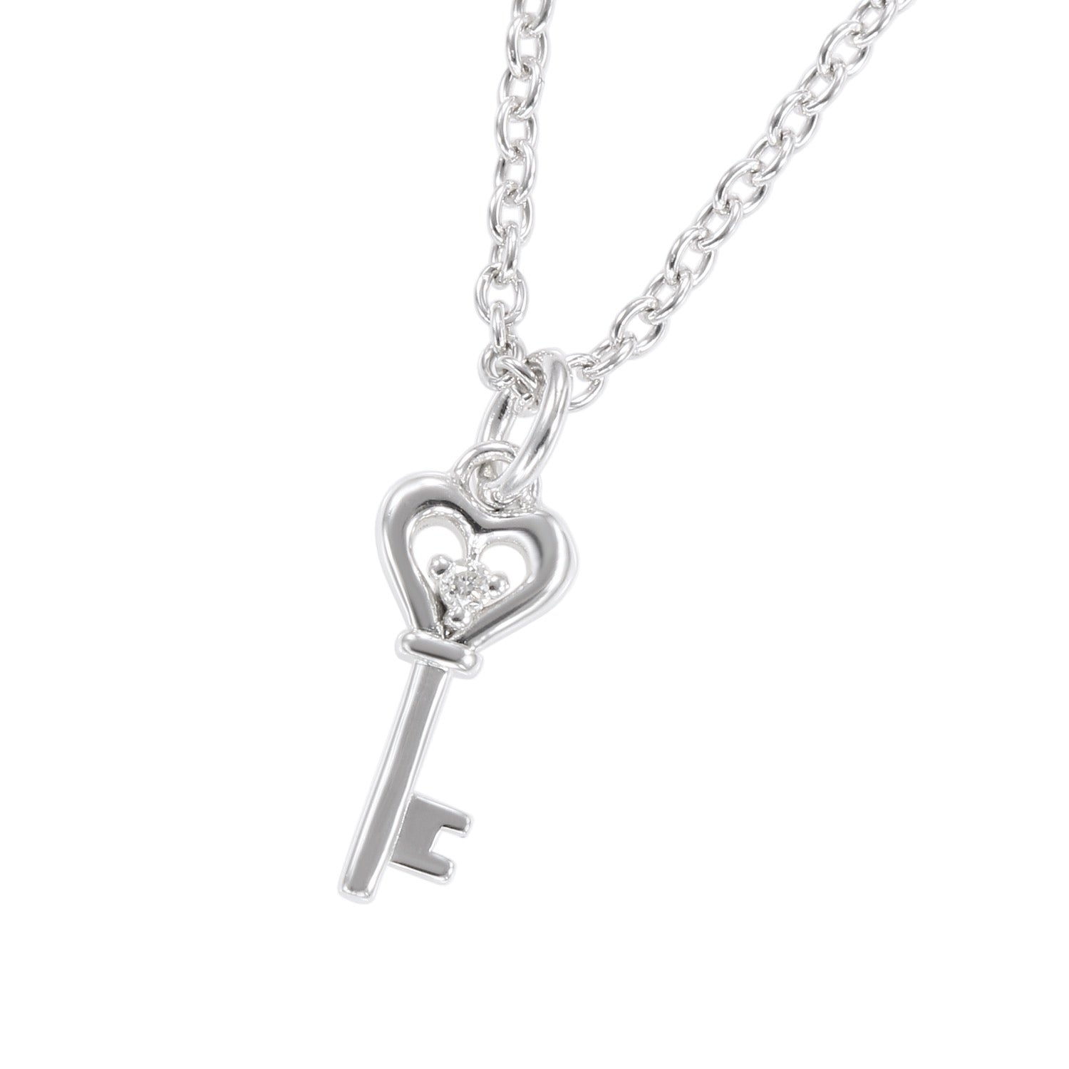 A heart key motif necklace with a single sparkling diamond.