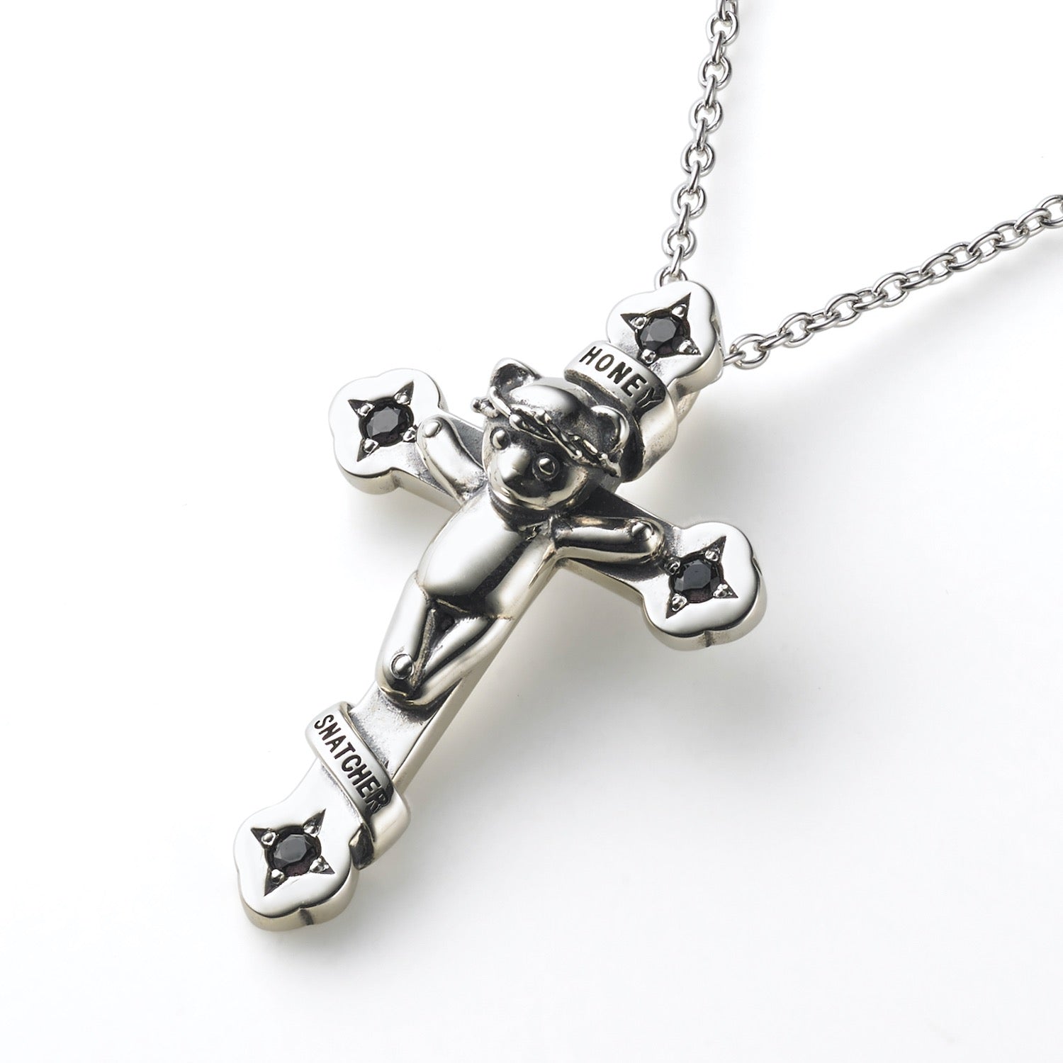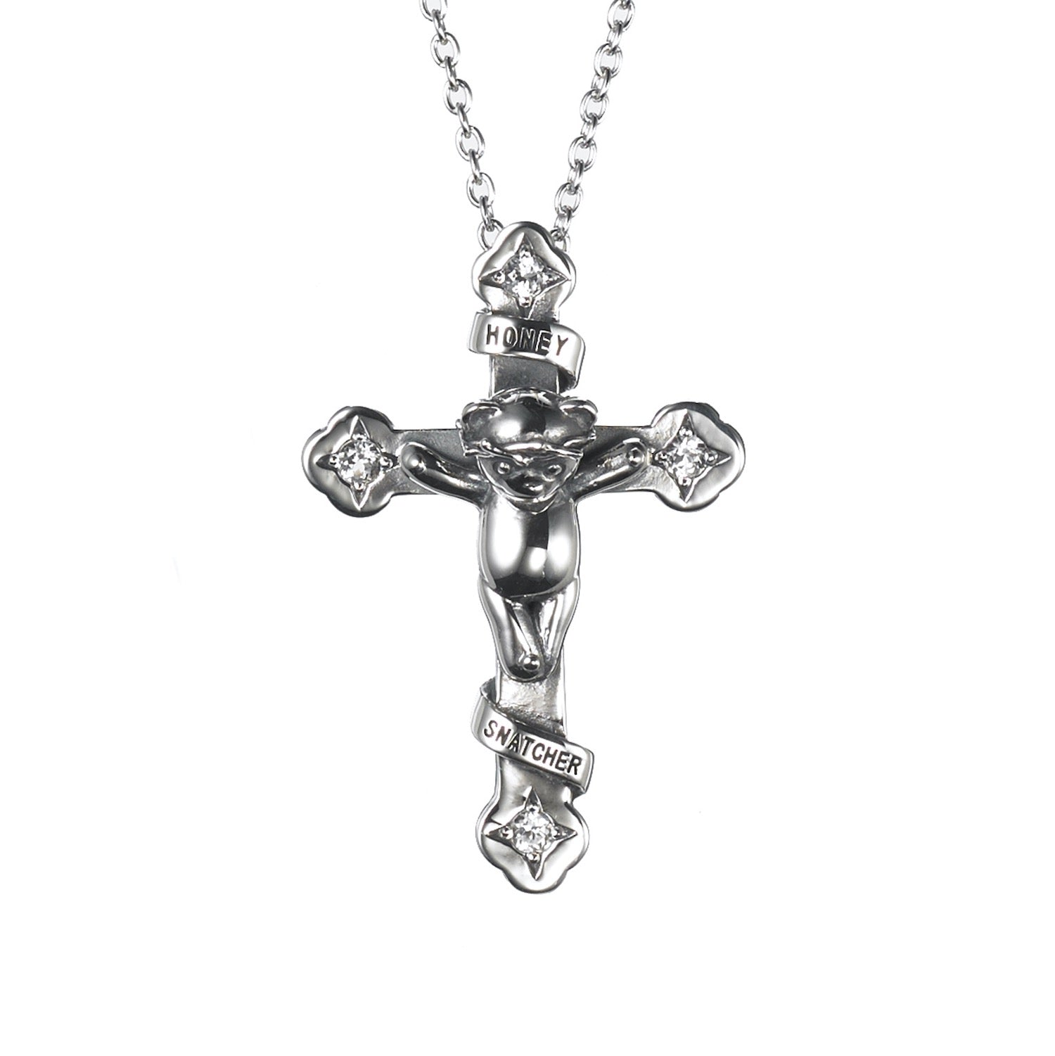 HONEY SNATCHER' — a bear bound to a cross.