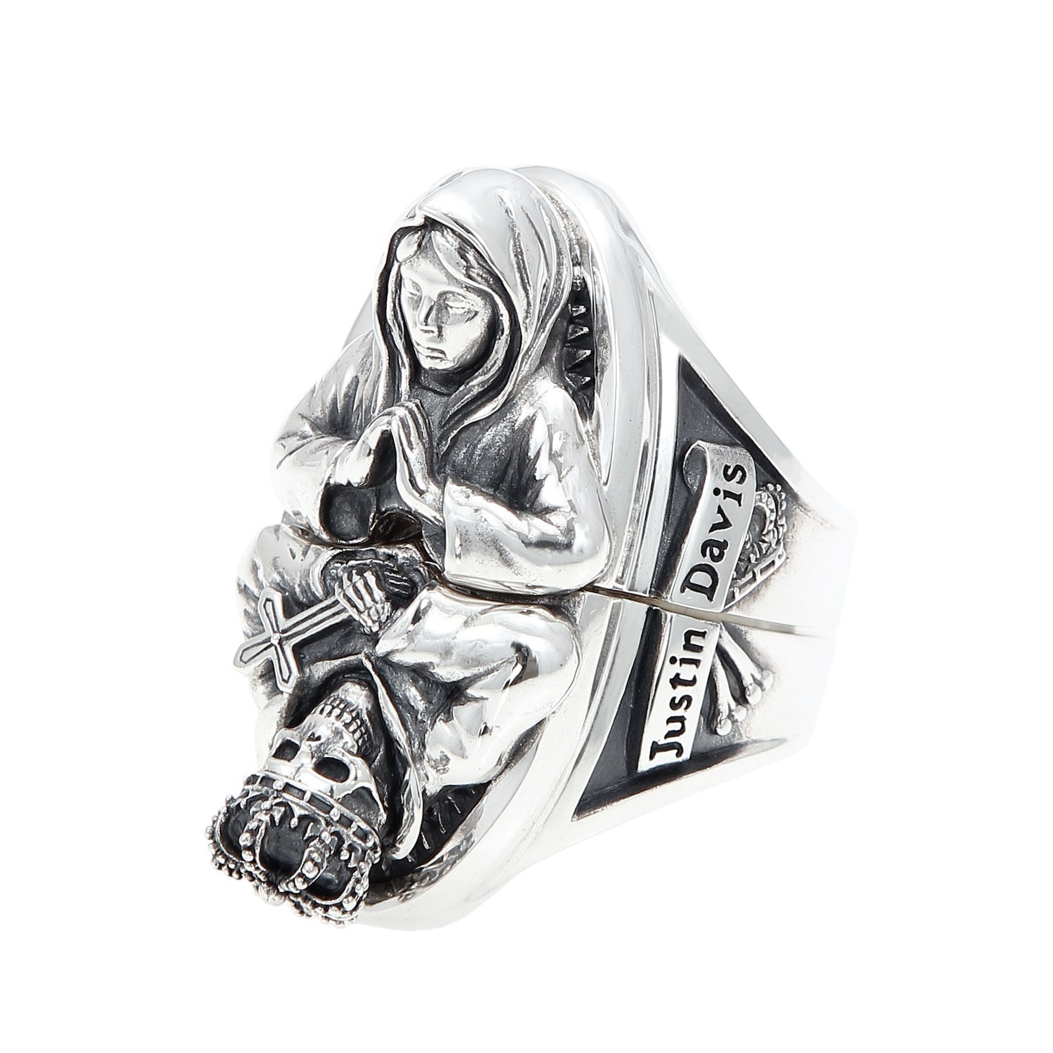 These large stacking rings have a skull and the Virgin Mary respectively, meaning dividing the fates.