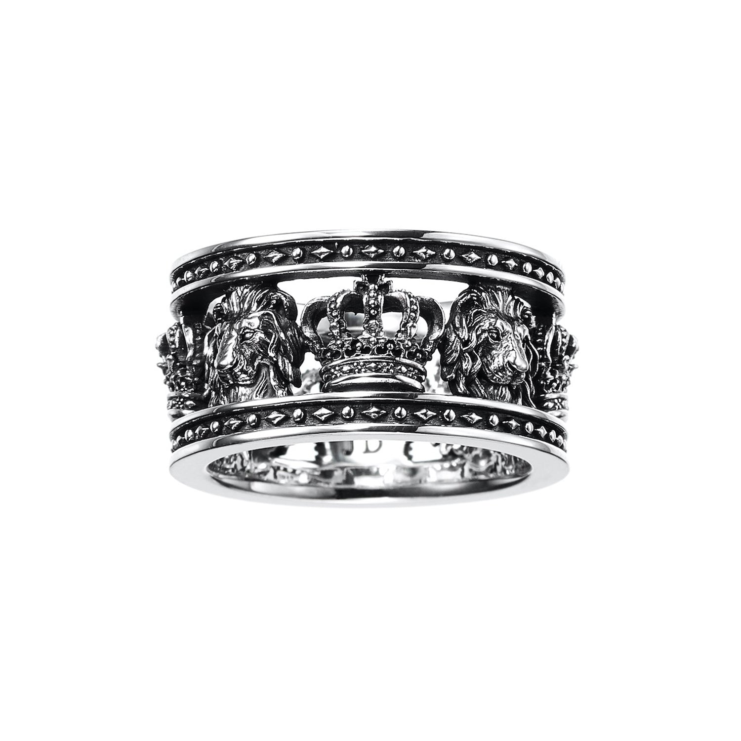 A basic ring in Justin Davis style features crown and rion motifs arranged alternately, which is elegant and impressive.