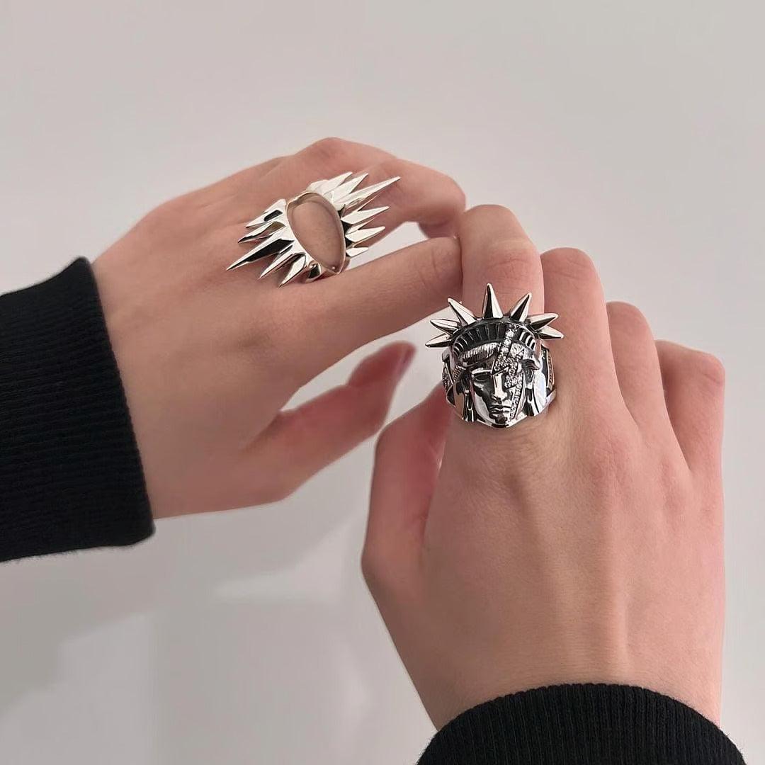 7 libery spikes on one side express liberty and another 7 freedom spikes on the other side represent freedom.