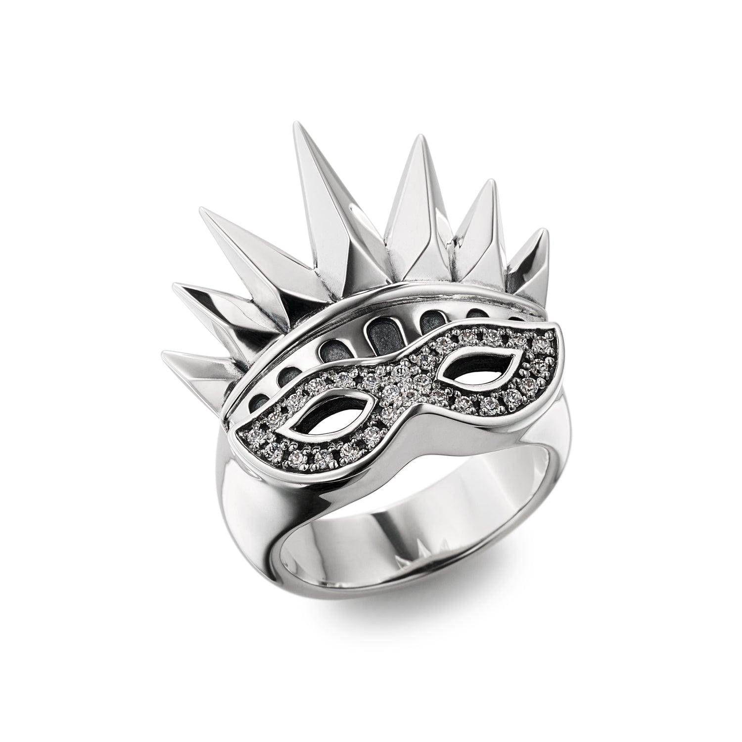Full of lighting in night scene after the sun sets. The shining liberty spike and mask create satisfaction and uplifting.