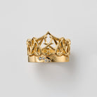 Two interlocking rings unite contrasting elements of rawness and warmth, each crown expressing its own individuality.