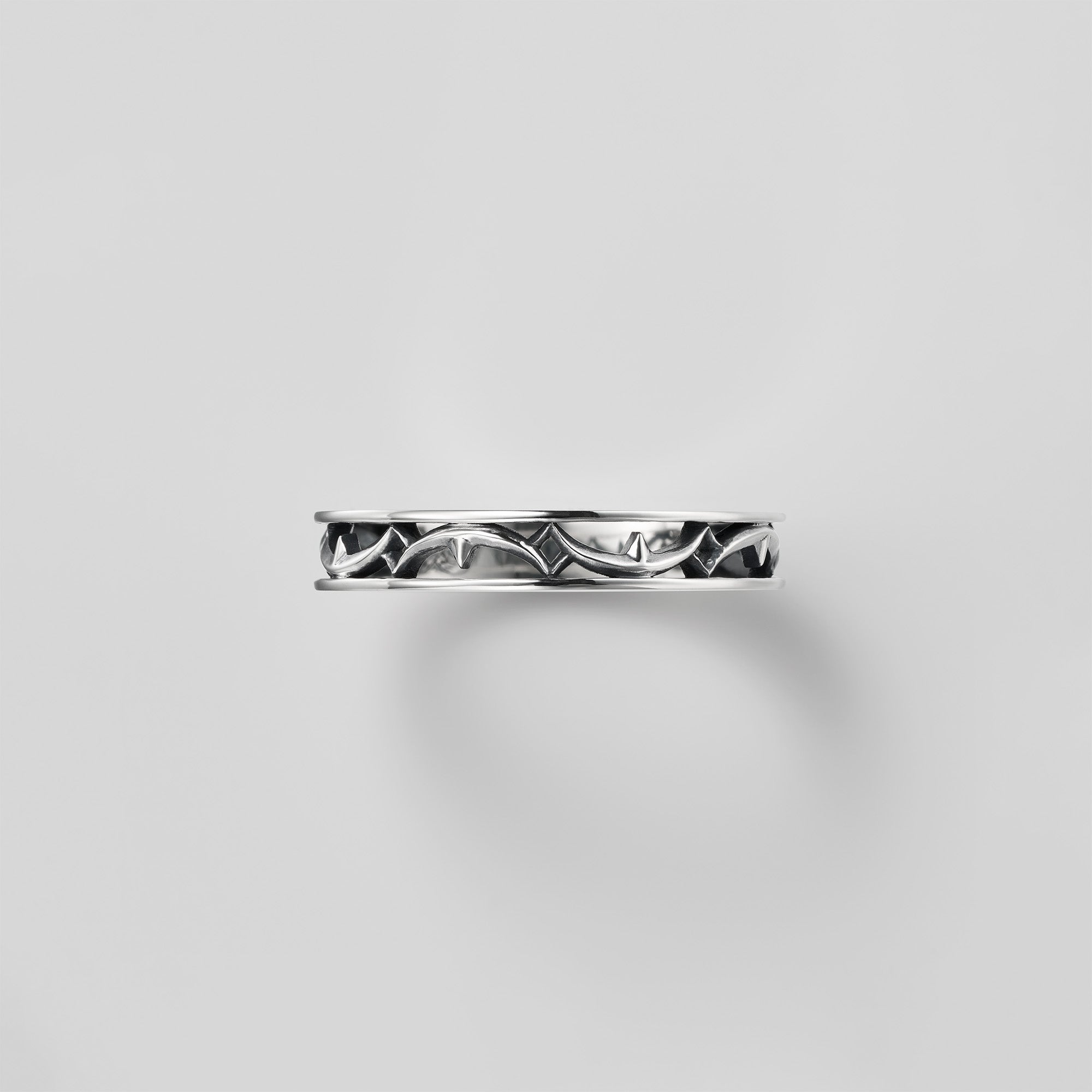 A bold ring defined by purposeful, intertwining lines that evoke the deep-reaching roots of the earth — a design of strength and conviction.