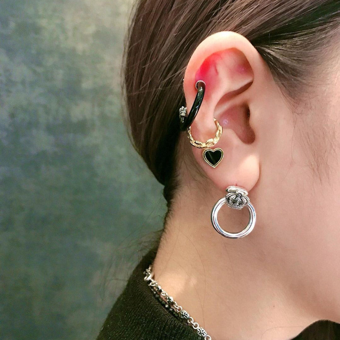 Simple heart-shaped onyx earring has a great presence on your ear. Uses hypoallergenic K18 post. *Single earring