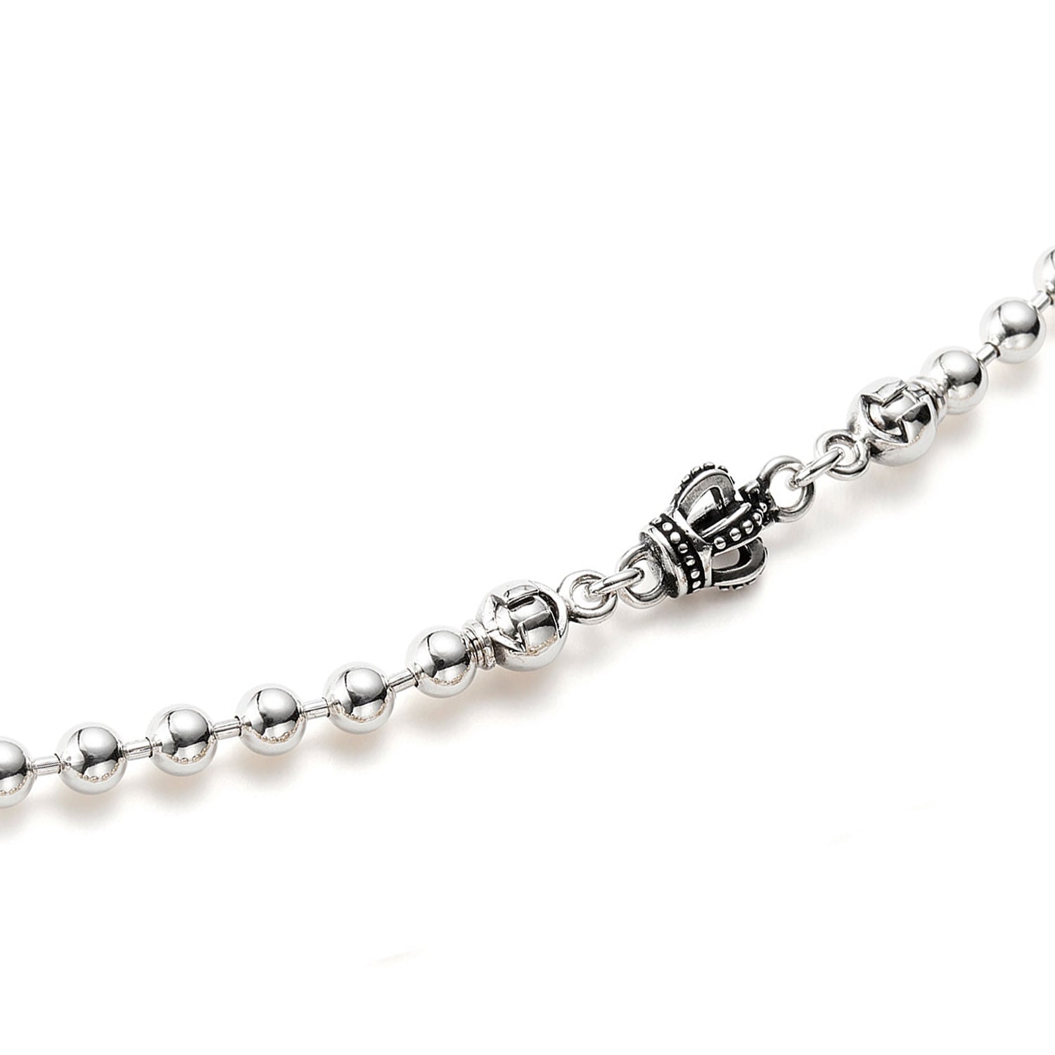 This combination of crown motifs and ball chains complements your cool style and it is carefully designed for comfortable fit. This necklace and a pendant top will be enhanced beautifully each other. Also can be worn on its own. No adjuster chain. Some of pendant tops may not fit through this chain. Feel free to contact us for the detail.