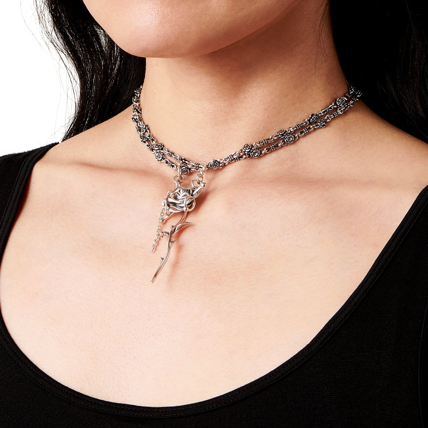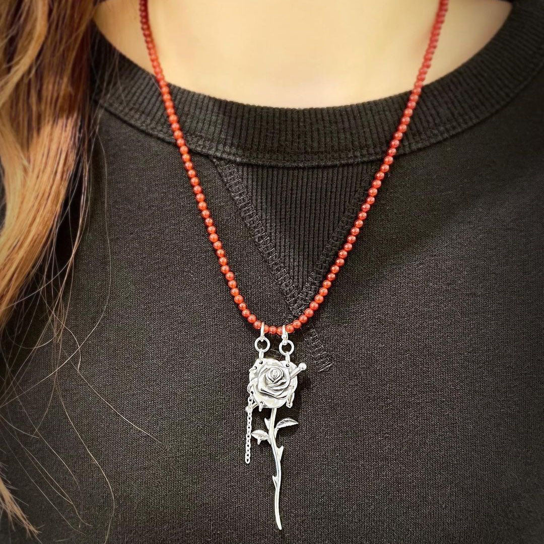 This pierced rose was born from our brand’s bold inspiration. Jewelries always ties with freedom. This pendant includes a message that the large blooming rose on your neck gives a power for you to be true to yourself in your life. This chain can be worn playfully in various ways.