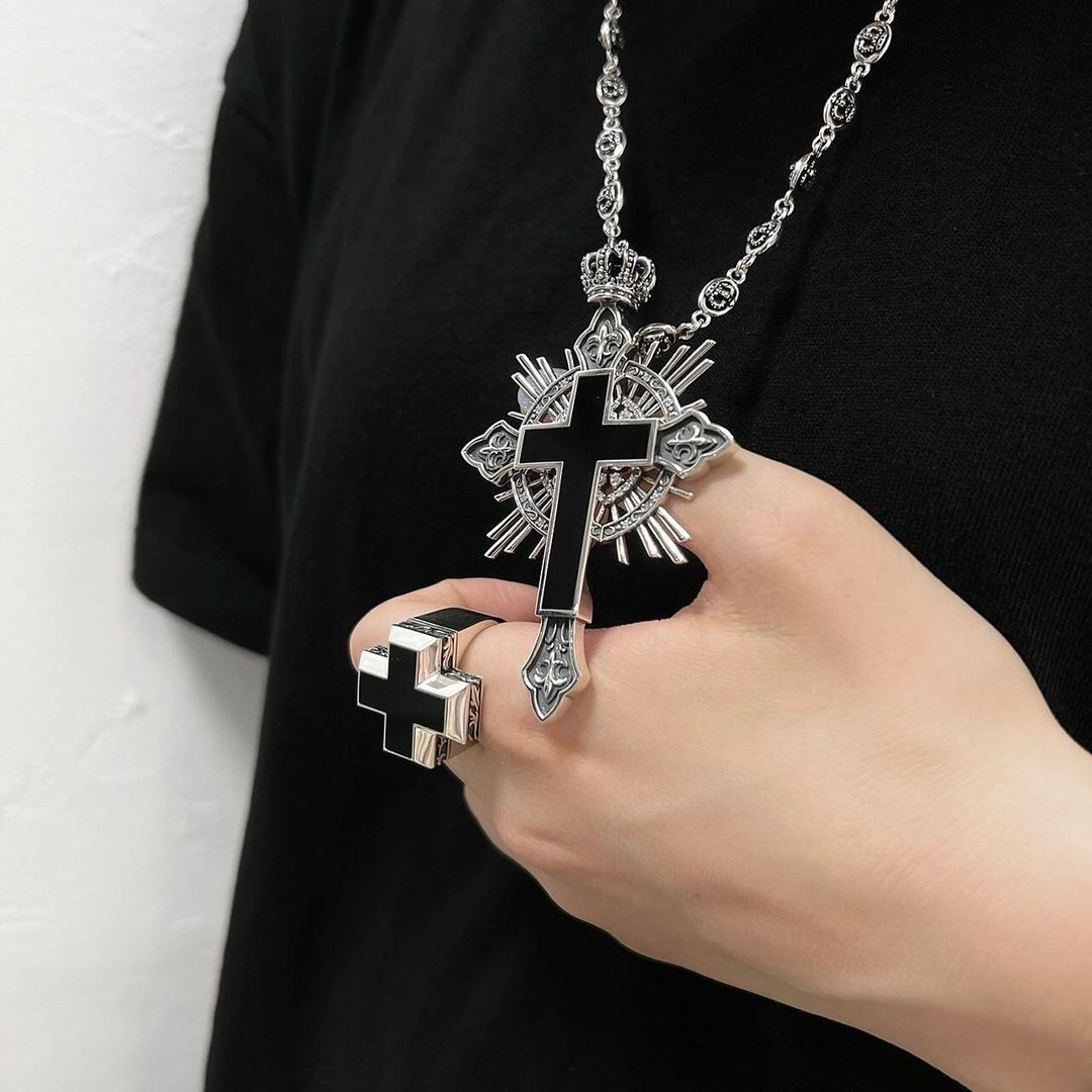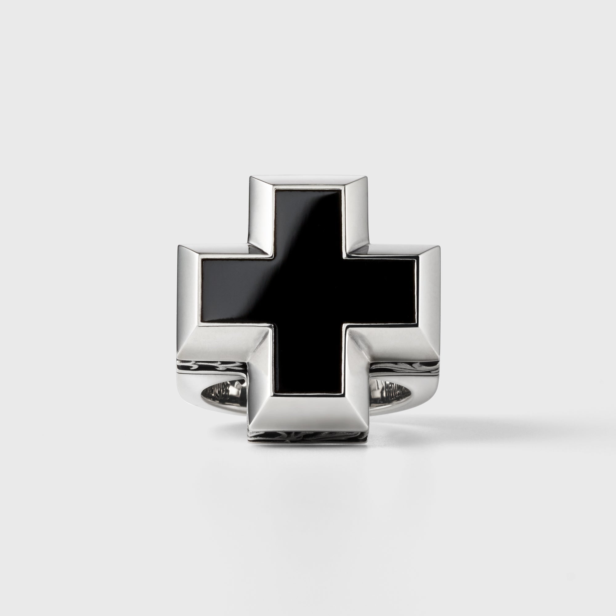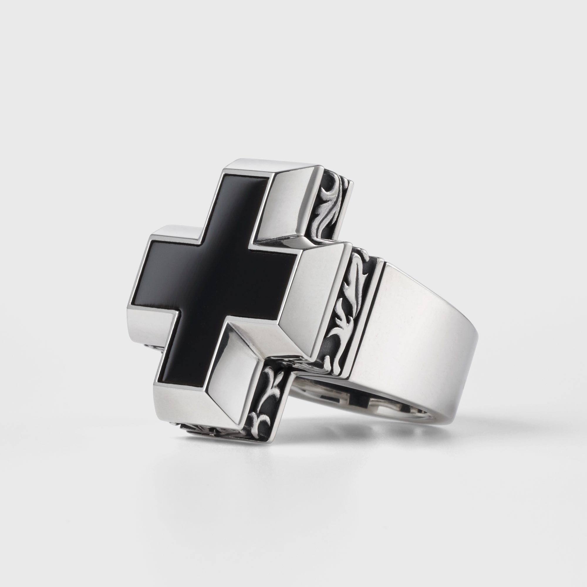A ring features a cross-shaped Onyx. The "CHANGES" is carved on the inner side and the arabesque pattern surrounding the cross is stunning.